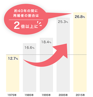 このような中、「夫婦ともに再婚」または「どちらか一方が再婚」という再婚カップルは年々増えており、今では4組に1組が再婚カップル!交際や結婚に発展させるのは、なかなか難しそうですよね。